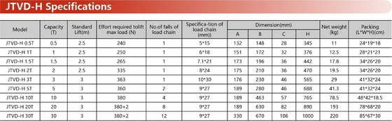 Güvenlik ve performans JTVD-H el kaldırıcısının tasarımında çok önemlidir:
